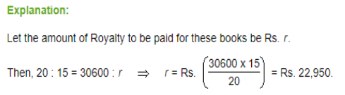 Q4. If for a certain quantity of books, the publisher has to pay Rs. 30,600 as printing cost, then what will be the amount of royalty to be paid for these books?
